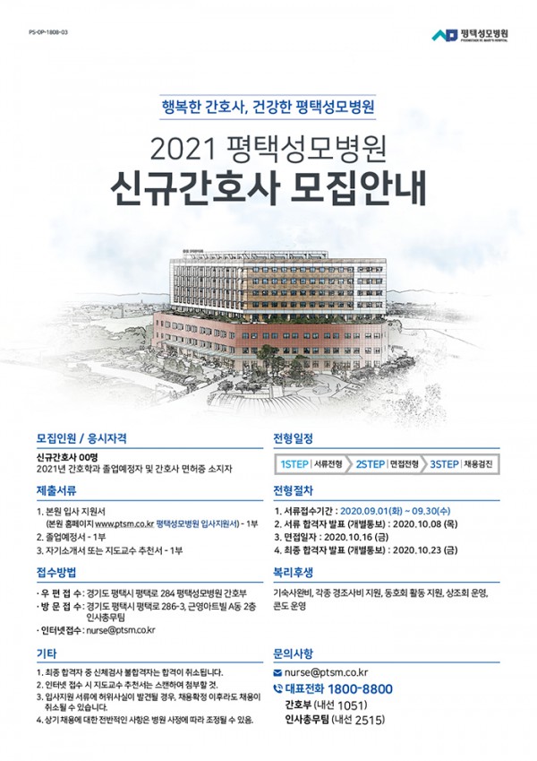 <평택성모병원>2021학년도 신입간호사 채용공고