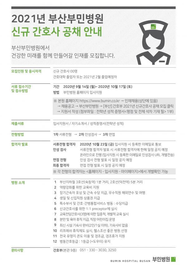 <부산부민병원> 2021년도 신규간호사 채용 공고