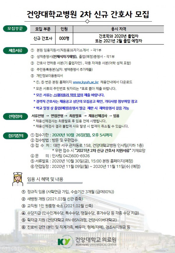 <건양대학교병원> 2021년도 신규간호사 채용 공고
