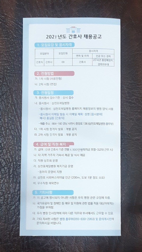 <삼천포 제일병원> 2021년도 신규간호사 채용 공고