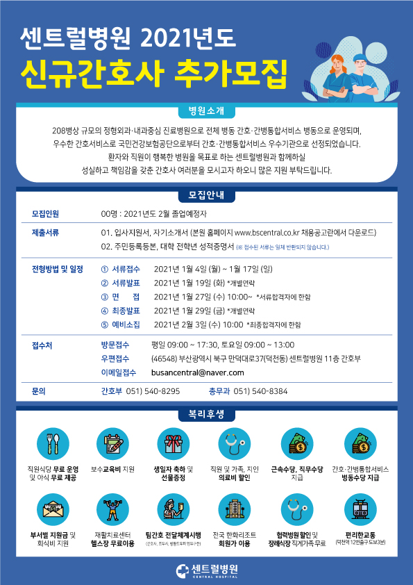 <부산 센트럴병원> 2021년도 신규간호사 채용 공고