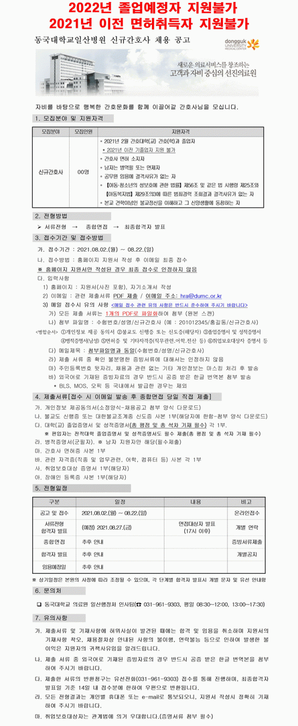 <동국대학교 일산병원> 2021년도 신규간호사 채용 공고