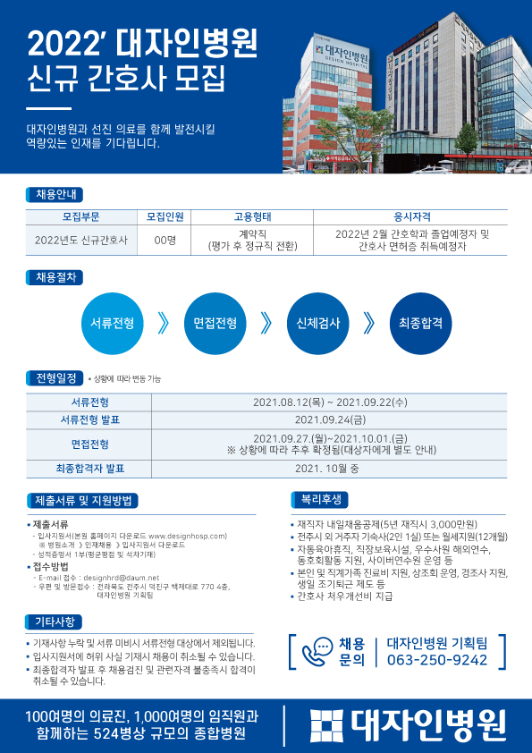 <대자인병원> 2022년도 신규간호사 채용 공고
