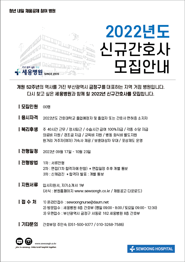 <세웅병원> 2022년도 신규간호사 채용 공고