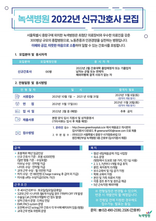 <녹색병원> 2022년도 신규간호사 채용 공고