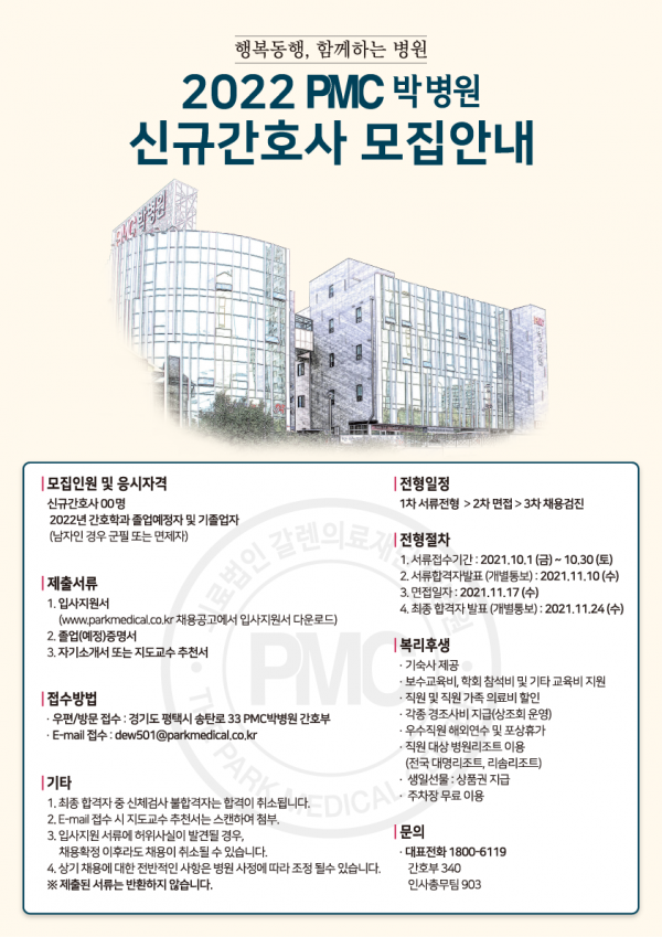 <PMC박병원> 2022년도 신규간호사 채용 공고