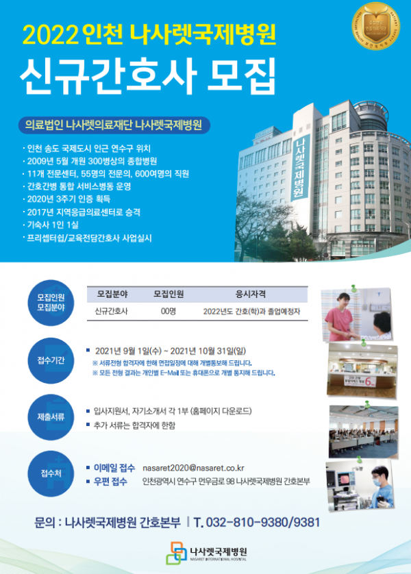 <나사렛국제병원> 2022년도 신규간호사 채용 공고
