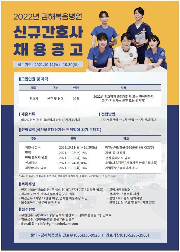 <김해복음병원> 2022년도 신규간호사 채용 공고
