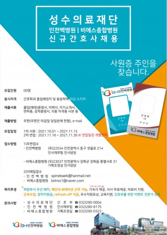 <인천백병원> 2022년도 신규간호사 채용 공고