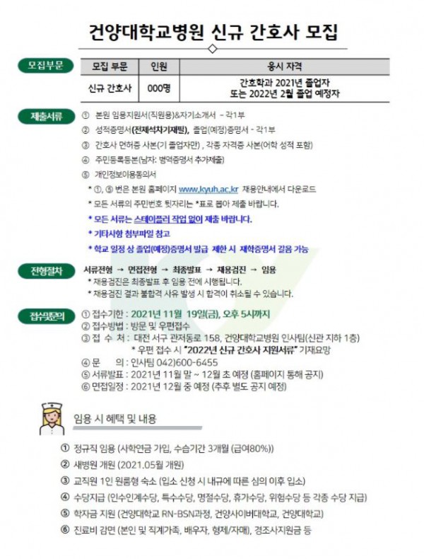 <건양대학교의료원> 2022년도 신규간호사 채용 공고