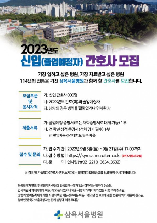<삼육서울병원> 2023년도 신입 간호사 모집 공고