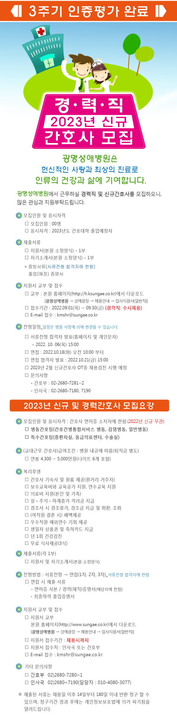 <광명성애병원> 2023년 신규 간호사 모집 공고