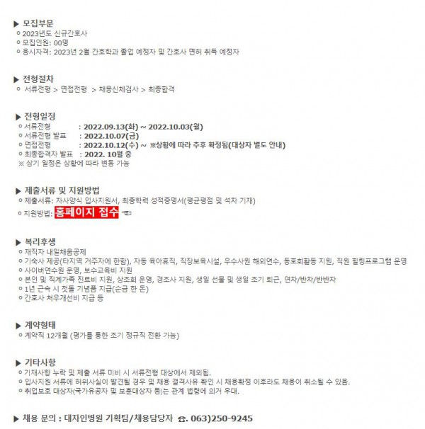 - <대전한국병원> 2023년도 신규 간호사 모집 공고
