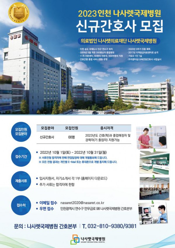 <나사렛국제병원> 2023년도 신규 간호사 모집 공고