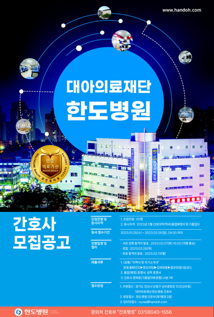 <한도 병원> 2023년 신규 간호사 추가 모집 채용 공고