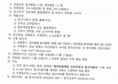 <청아의료재단 동서병원, 청아병원> 2024년도 신규 간호사 채용 공고