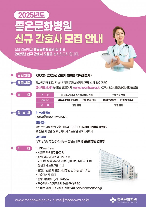 <좋은문화병원> 2025년도 신규 간호사 채용 공고