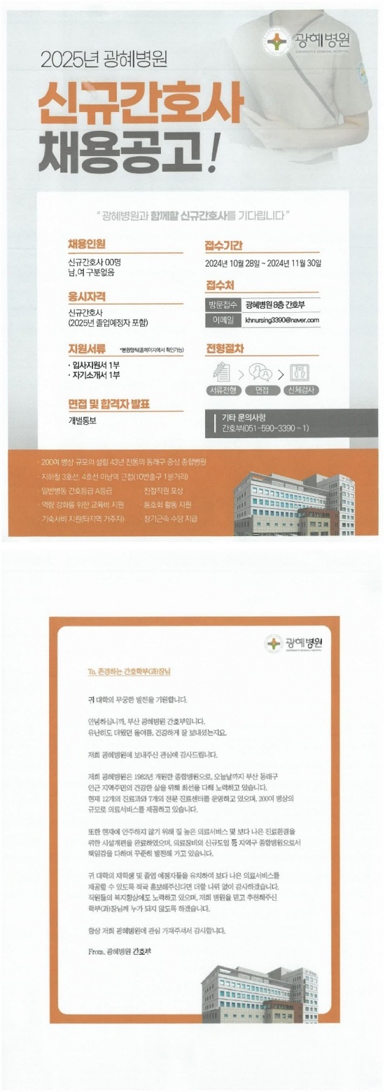 <광혜병원> 2025년도 신규 간호사 채용 공고