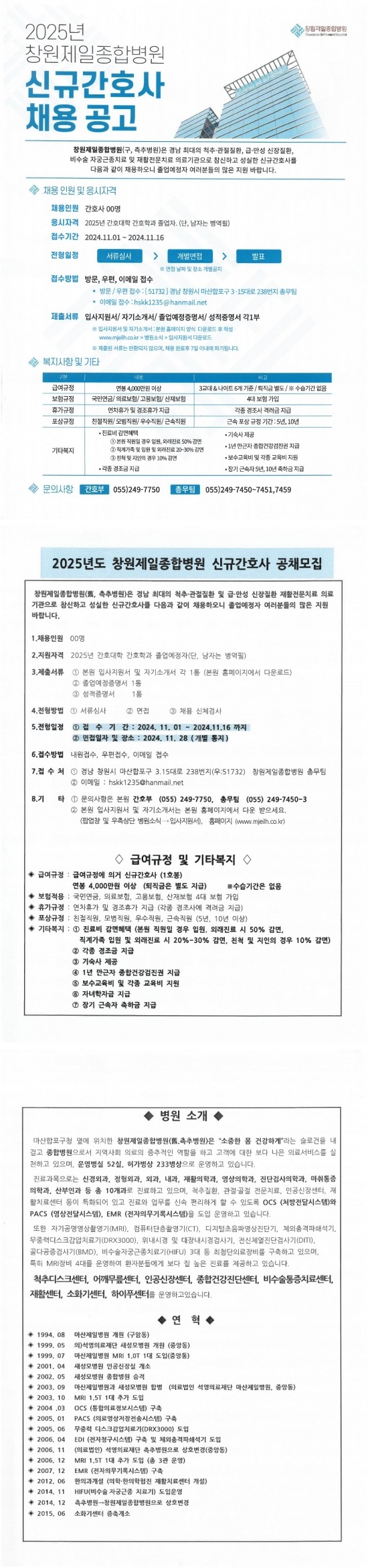 <창원제일종합병원> 2025년도 신규간호사 공채모집창원제일종합병원> 2025년도 신규간호사 공채모집