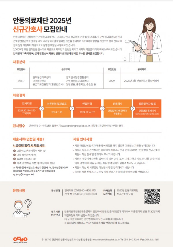 <안동의료재단> 2025년도 신규 간호사 채용 공고