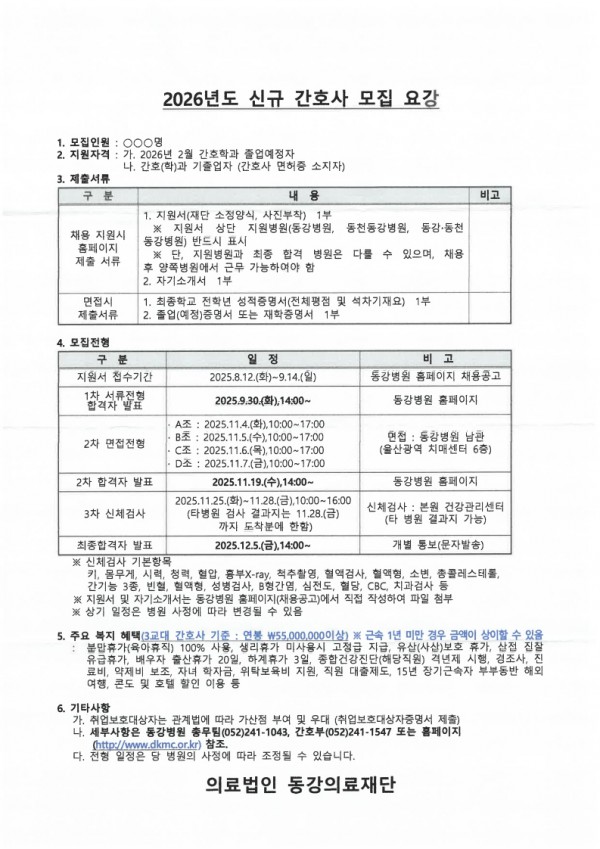 <동강병원> 2026년도 신규간호사 모집