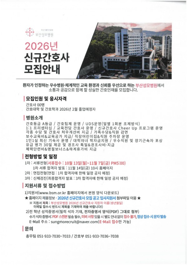 <부산성모병원> 2026년 신규간호사 모집안내