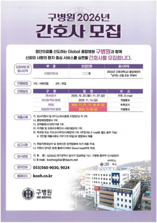 <구병원> 2026년 간호사 모집
