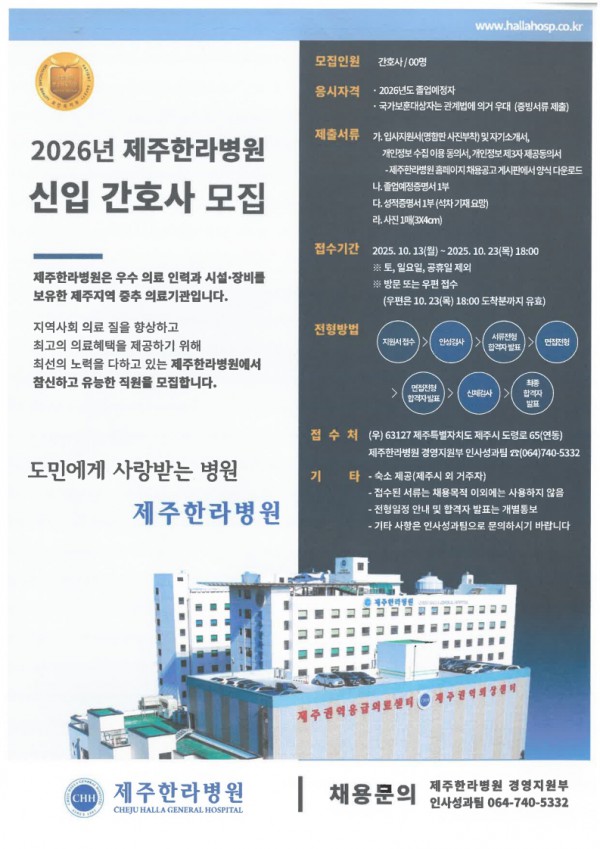 <제주한라병원> 2026년 신입 간호사 모집