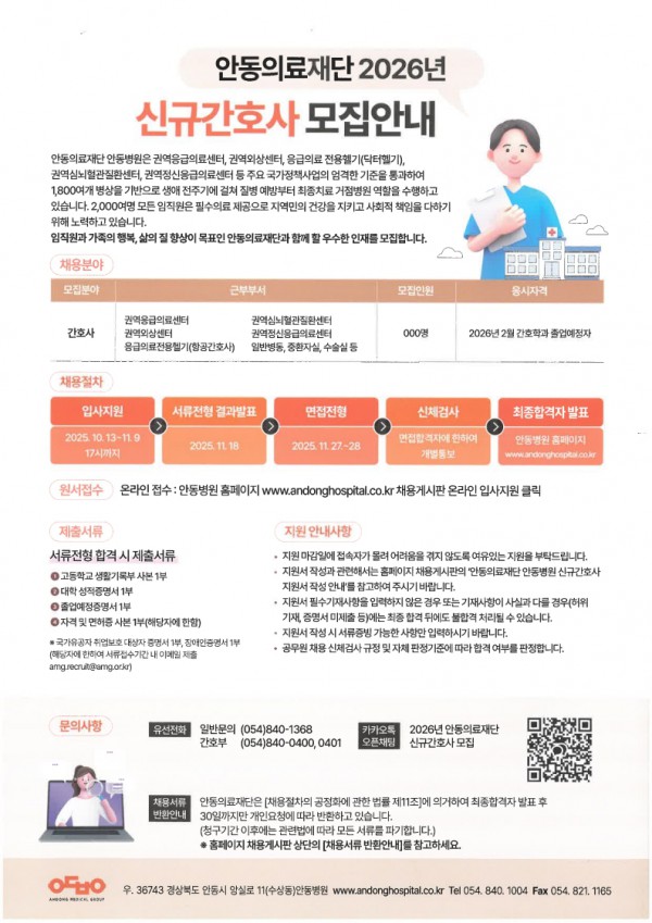<안동의료재단 안동병원> 2026년 신규간호사 모집